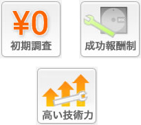 弊社では、データ復旧が出来なかった場合は料金発生しません。 当サービスでは 『高いモノは良いモノだ』 『安かろう悪かろう』 ではなく『安心の技術を低価格で』 をスローガンとし、高い技術水準を維持しながらも日々コストダウンにチャンレジしています。これからも日々、価格と品質のバランスの取れたデータ復元サービスを追求していきます